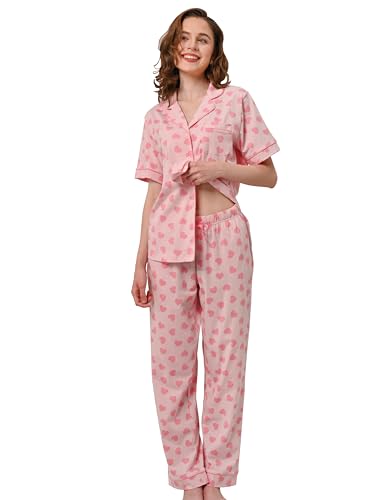 NAP BOUND Cotton Women's Pajamas Set Short Sleeve Top With Pants Pjs Lounge & Sleepwear Set(FAX,S)
