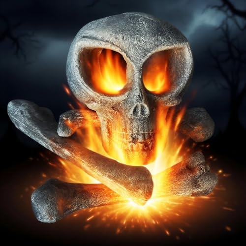 MrGas Log 4 PCS Ceramic Halloween Alien Dark Weathered Wood Color Skull Set, Including 1 Skull and 3 Thigh Bones for Fire Pits, Campfires, Bonfires, Fireplaces and Halloween