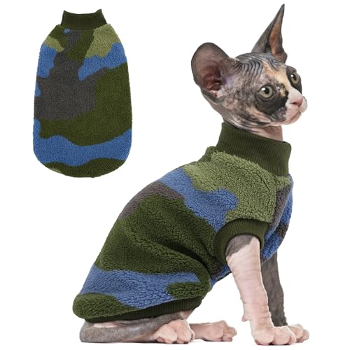 PUMYPOREITY Winter Warm Cat Sweater with Stretch Ribbed Collar & Cuffs, Snug & Secure Fit with Soft Plush Fleece, Easy-On Cat Sweatshirt for Indoor/Outdoor Use,Green, M