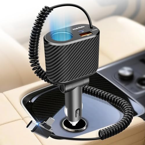 Magjieyx Car Cigarette Lighter Splitter Charger, 5 in 1 Fast Car Phone Charger with 1-Socket(100W)Charging Adapter and USB C Coiled Cable for iPhone 17 16 15, Galaxy S25 Ultra/iPad/GPS/Dash Cam/Laptop