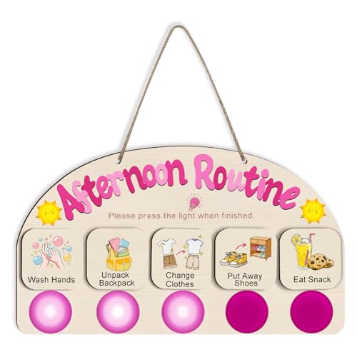 AINBIN Afternoon Routine Chart for Toddlers, Visual Schedule Chart Planner to Do List with 5 Tap Lights & 9 Activity Cards Planning, Wooden Schedule Board for Kids, Preschoolers, Autism, ADHD Tools