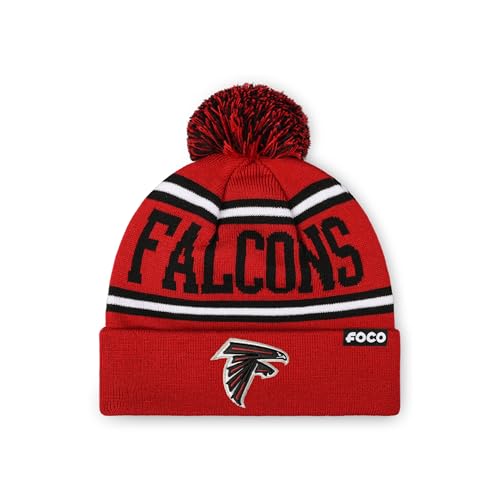 FOCO Atlanta Falcons NFL Primary Logo Stripe Pom Beanie - Red