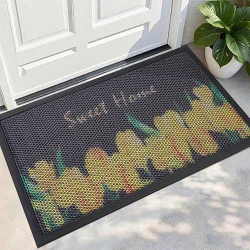 PLEASOR Door Mat for Front Door Entrance, Dirt Trapper Welcome Mat Outdoor Indoor, Non-Slip Waterproof Doormat for Outside/Inside Use, Low Profile Entryway Rug, 17"x30", Yellow