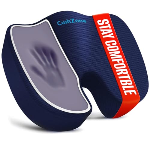 CushZone Seat Cushion, Office Chair Cushions, Car Seat Cushion, Non-Slip Sciatica & Back Coccyx Pain Relief Chair Pad, Memory Foam Pillow for Computer Desk, Wheelchair, Driving Large Size (Blue)