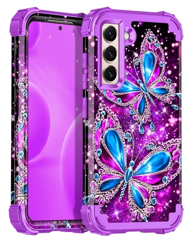 Miqala for Galaxy S22 5G Case,Glow in The Dark Three Layer Heavy Duty Shockproof Full Body Protection Hard Plastic Bumper+Soft Silicone Protective Case for Samsung Galaxy S22 6.1 inch,Royal Light