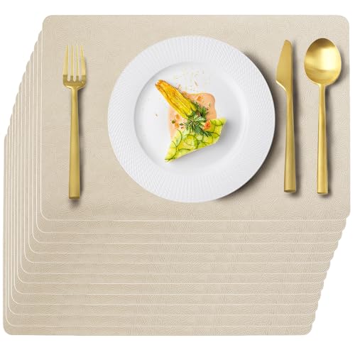Uolr Vinyl Placemats Set of 12 Faux Leather 100% Waterproof Wipeable Washable Place Mats Heat Resistant Easy Clean Non-Slip Table Mats for Indoor Outdoor. (12,Beige)