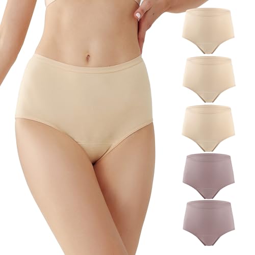 BATTEWA Incontinence Underwear for Women Washable, Leak Proof Underwear High Waist Cotton,Bladder Leakage 50ML (Beige-Blush, Large, 5 Pack)