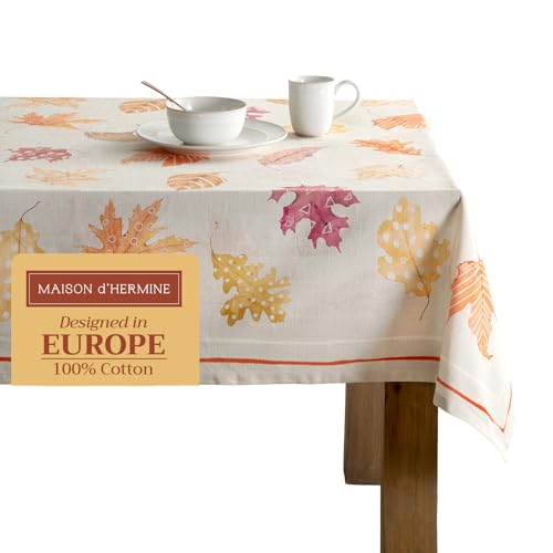 Maison d' Hermine Table Cloth Square Table 100% Cotton 60 x 60 Inches Fall Tablecloth Reusable Everyday Use for Thanksgiving Christmas Decorations Dining Farmhouse Party (Colours of Autumn)
