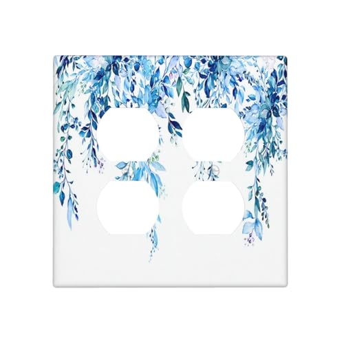 OILbiexn Decorative Outlet Covers Blue Eucalyptus Leaves Sage Leaf Vine Floral 2 Gang Outlet Cover Wall Plate Double Duplex Light Switch Cover Plate Switch Plate Covers for Bedroom Home Decor