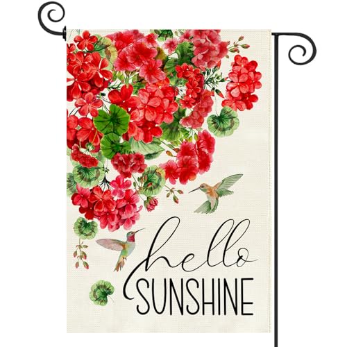 Baccessor Spring Garden Flag 12.5 x 18 Inch, Red Geranium Floral Double Sided Burlap Welcome Small Yard Flag Seasonal Holiday Lawn Proch Outdoor Outside Decor