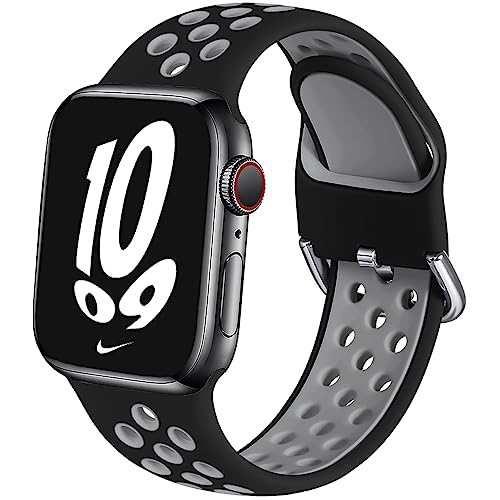 Muranne Compatible with Apple Watch Bands 38mm 40mm 41mm for Men and Women, Soft Silicone Wristband Replacement Sport Loop Compatible with iWatch SE Series7 6 5 4 3 2 1, Black/Gray, S/M