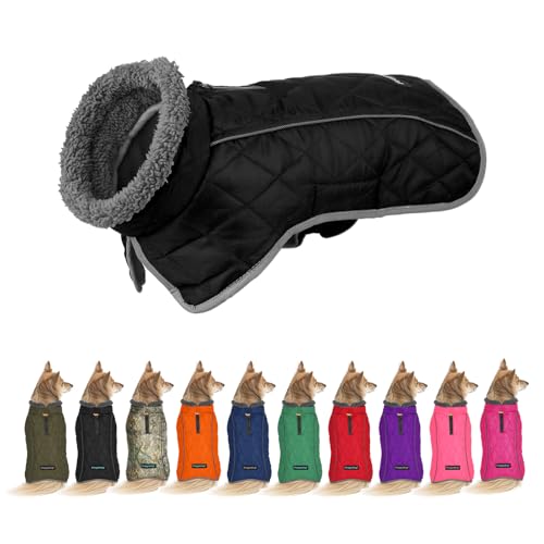 Fragralley Dog Coat Small, Waterproof Dog Jacket with Warm Fleece Lining, Adjustable Reflective Dogs Winter Coat, Turtleneck Pet Coats for Cold Weather (Black S)