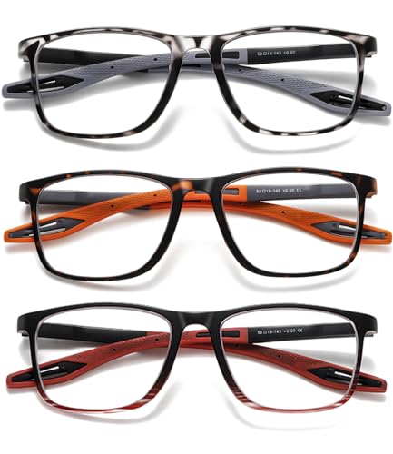 Hubeye TR90 Sports Reading Glasses for Men and Women Ultralight Flexible Anti-Blue Light Readers(Leopard Grey+Leopard Orange+Striped Red,+1.75)