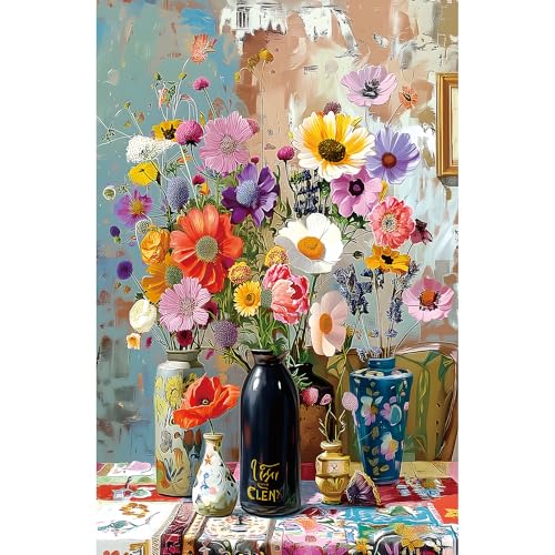 Floral Bouquet 500 Piece Jigsaw Puzzle for Adults Colorful Wildflowers & Vases Puzzle - Premium Art Puzzle for Adults, Family or Seniors - 15"x23" Challenging Puzzle with Poster