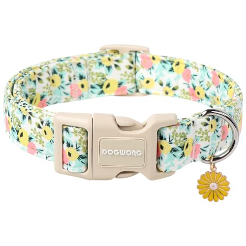 DOGWONG Flower Cotton Dog Collar, Spring Summer Cute Yellow Dog Collar Durable Soft Fabric Pet Dog Collars Female Girl Necklace for Small Medium Large Dogs