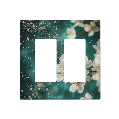 OILbiexn Outlet Covers Golden Powder White Floral Luxurious Flowers 2 Gang Light Switch Cover Double Rocker Wall Plate Decorative GFCI Socket Cover Electrical Switchplate for Bathroom Bedroom Decor