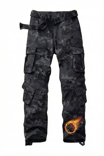 TRGPSG Men's Fleece Lined Hiking Pants Camo Ski Pants Outdoor Ripstop Winter Casual Cargo Pants with 8 Pockets JR55 Black Camo 36