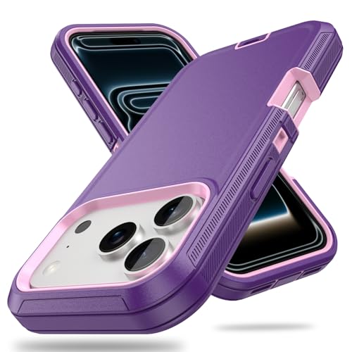 ACAGET for iPhone 17 Pro Case Rugged Heavy Duty Matte Protective Phone Cases with Port Anti Dust Plug Armor Shockproof Dual Layer Rubber Bumper Shell + PC Cover for iPhone 17 Pro 5G, Purple Pink