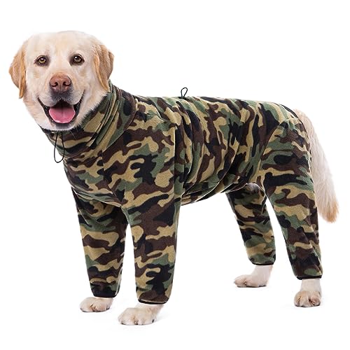 Dog Winter Coat for Large Medium Small Dogs, Warm Fleece High Collar Full Body Dog Jumpsuit Comfortable Onesie Apparel (Camouflag, 2X-Large)