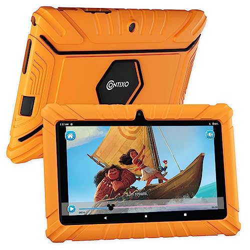 Contixo V8 7" Kids Tablet - 32GB Storage, Pre-Loaded Exclusive Ad-Free Content, Android, Parental Controls, Durable Kid-Proof Case, IPS Touch Screen, Dual Camera, WiFi, Ages 3-12, Gift - Orange