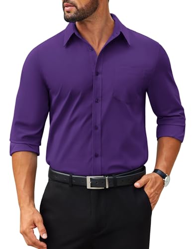 COOFANDY Mens Dress Shirts Long Sleeve Poplin Formal Shirt Casual Button Down Shirts Purple