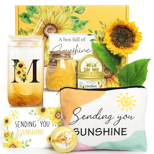 Sunflower Initial Gifts, Get Well Soon Gifts, Self Care Spa Birthday Gifts for Women Monogrammed Gifts, Sunshine Gift Baskets, Personalized Gifts, M