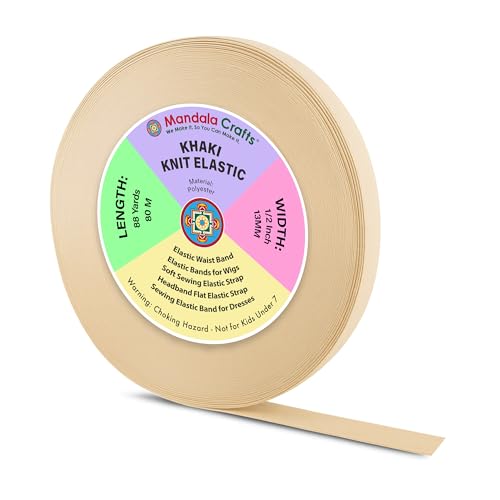 Mandala Crafts Wide 1/2 Inch Khaki Elastic Bands Spool for Pants Waistbands Sewing and DIY Crafts, 88 YD Stretchy Flat Fabric Strap Knit Elastic Band for Wig