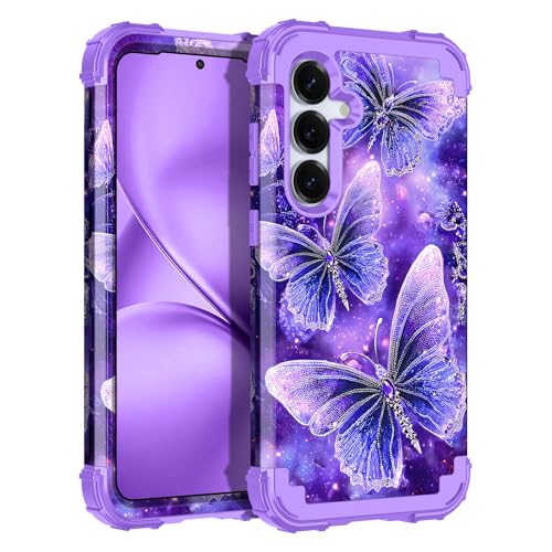 LONTECT for Galaxy S25 Plus Case Glow in The Dark Three Layer Heavy Duty Shockproof Hard PC+Soft Silicone Rugged Full Body Protective Case for Women Girls,Perwinkle