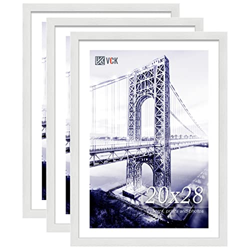 VCK 20x28 Poster Frame Set of 3 - White, Textured Exclusive Solid Wood Picture Frames, Wall Hanging
