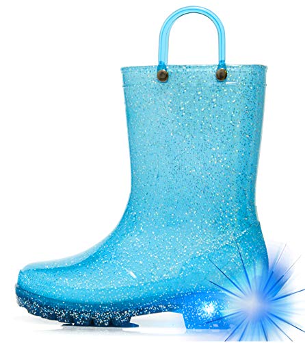 HugRain Toddler Girls Rain Boots Little Kids Baby Light Up Waterproof Shoes Lightweight Rubber Adorable Sparkle Glitter with Easy-On Handles Non Slip (Size 5,Blue)