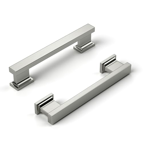 Banqin Cabinet Handles Kitchen Drawer Pulls and Knobs, 10Pack Brushed Satin Nickel 3inch Hole Center, Square Hardware for Bathroom Dresser