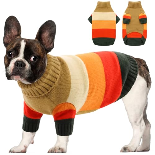 AOFITEE Dog Sweater, Stretchy Dogs Sweaters Large Sized Pets, Turtleneck Sweater for Pet Large Breed, Thick Knitwear for Fall Winter, Clothes for Pug, French Bulldog (Brown L)