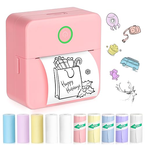 ST-CARE Portable Thermal Printer with 10 Roll Papers for Journal/DIY Scrapbook/Travel/Notes/Lists/Label/Memo, Receipt Printer for Children Women Gifts Kids Christmas iOS&Android