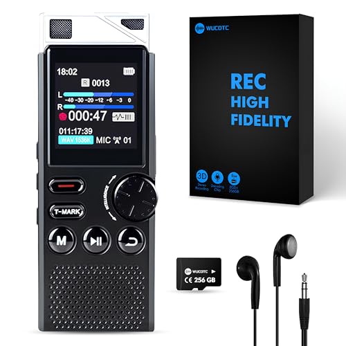 Professional 264GB WUCOTC Digital Voice Recorder - Voice Activated Recorder for Lectures Meetings - 18000 Hours Recording Device with Playback, MP3 Player, Password Protection, Variable Speed, Black