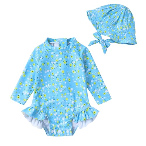 Infant Baby Girl Swimsuit One-Piece Long Sleeve Rash Guard with Hat Set Floral Zipper Bathing Suit Leopard Beach Wear