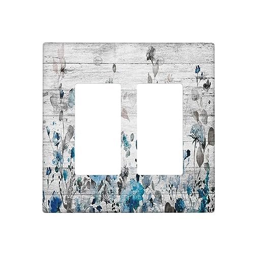 Watercolor Roses Flowers Grey Wood 2 Gang Rocker Decora Light Switch Covers Dual Outlet Covers Wall Plate Abstract Elegant Floral Decorative Switchplate Electrical Faceplate GFCI for Farmhouse Decor