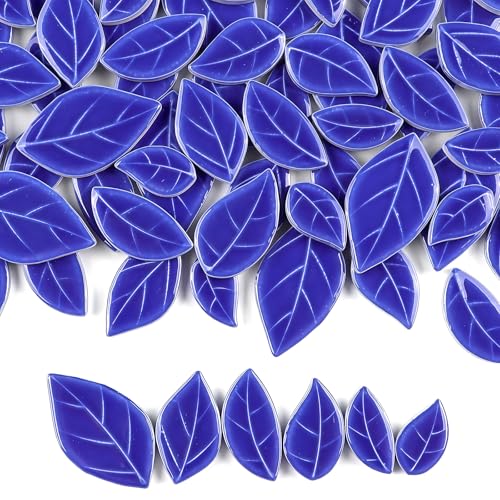 ZWCT 200g/7oz Colorful Leaves Ceramic Mosaic Tiles, DIY Creative Leaf Mosaic Tiles, DIY Handmade Plate vase Cup, Mosaic Crafting Supplies-Sapphire Blue