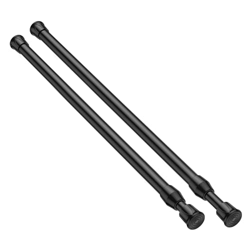 QINGYUN 2 Pack Spring Tension Curtain Rod 17 to 28 Inch, DIY Small Curtain Rods No Drill for Window Cupboard Closet Kitchen Cabinets, Black