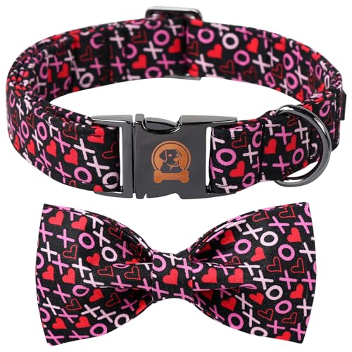 MR. CHUBBYFACE Valentine's Dog Collar with Bowtie, XOXO Red Heart Dog Collar with Metal Buckle, Cute Adjustable Boy Girl Female Collars for Small Medium Large Dogs