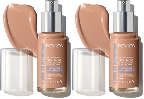 Revlon Illuminance Skin-Caring Liquid Foundation, Hyaluronic Acid, Hydrating and Nourishing Formula with Medium Coverage, 401 Light Coffee, 1 fl oz (Pack of 2)