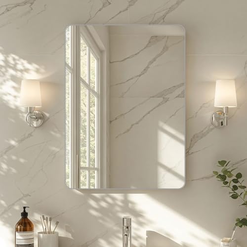 36x24"Bathroom Vanity Mirror for Wall, Aluminum Framed, Farmhouse Rectangle, Anti-Rust, HD Reflection Anti-Desilvering, Distortion Free, Tempered and Shatter-Proof Wall Mounted Mirror, Silver