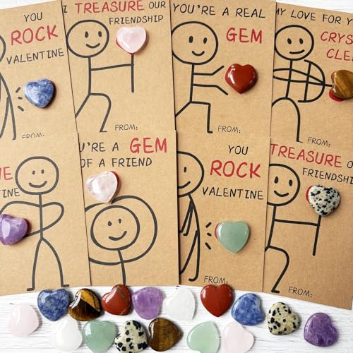 MBMFT Valentines Day Gifts for Kids - 24 Pack Valentines Cards with Heart-Shape Crystals - Funny Valentine Gems Exchange Gift for Boys Girls Toddler School Classroom Party Favors