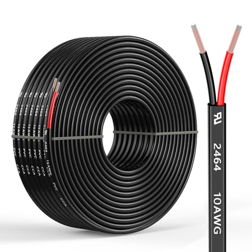10 Gauge 2 Conductors 150FT Electrical Wire, Flexible Low Voltage PVC Copper Clad Aluminum Extension Cord for Car Speaker Wire, Car Lighting, LED Wire, Outdoor Lighting, Residential Wiring, 12V/24V DC