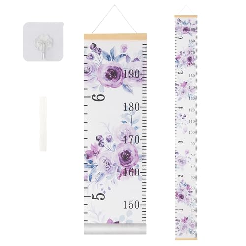 BESSLEE Canvas Kids Growth Chart for Wall, Purple Flowers Height Measurement Tracker for Baby Girl, Hanging Ruler with Removable Hook, Nursery Room Playroom Toddler Bedroom Decor, 79”x7.9”