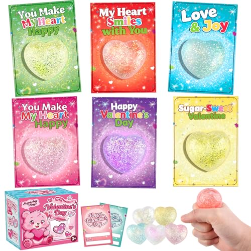 LLESSOO 24 Pack kids Valentines Day Gifts for School - Valentines Cards for Kids Classroom with Heart Glitter Stress Balls Squishies Toys, Classroom Exchange Party Favors