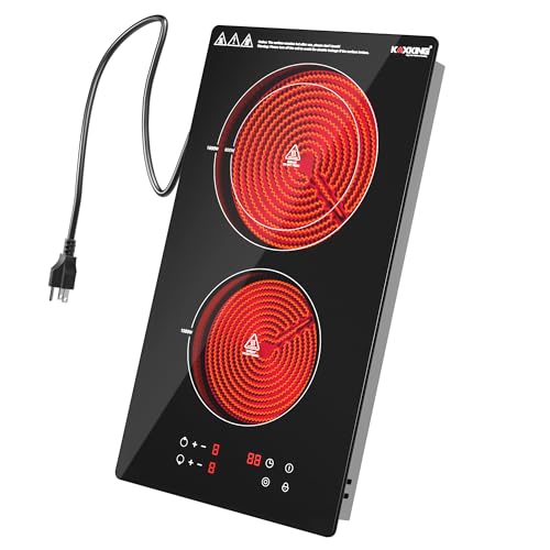 KOXKING 12 Inch Electric Cooktop 2 Burner, Expandable Dual Zone Ceramic Stove Top, 120V Plug-in Portable Hot Plate with Child Lock, 9 Heating Levels Radiant Burner for RV/Dorm, Works with All Pots