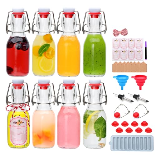 Brajttt 8 Set,4oz Flip Top Glass Bottle,Small Kombucha Bottles with Airtight Lid,Glass Bottle With Sealed Rubber Lid for Oil, Beer, Soda Water, Vinegar, Lemonade, Juice, Honey, DIY Storage Containers