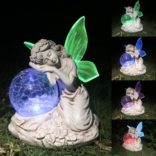 Solar Angel Garden Statue Outdoor Decor with Crackle Glass Globe Color Changing Light Angels Garden Figurines Garden Decor Lawn Ornaments for Patio Yard Lawn