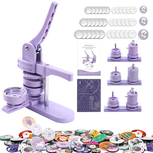 Alldeer 1+1.25+2.25 Inch Button Maker Machine Multiple Sizes - Pin Button Maker Kit for Kids, DIY Button Press Machine with 300 Sets of Supplies(Metal Cover, Plastic Pin Backs, Plastic Film)