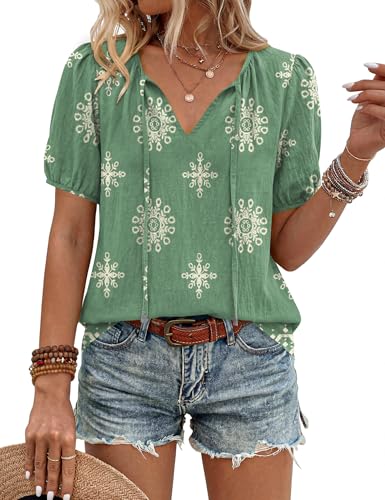 LOMON Women's Tops, Tees & Blouses Lantern Sleeve Boho Shirts Old Money Clothes St Patricks Day Shirts (Light Green Floral,XL)